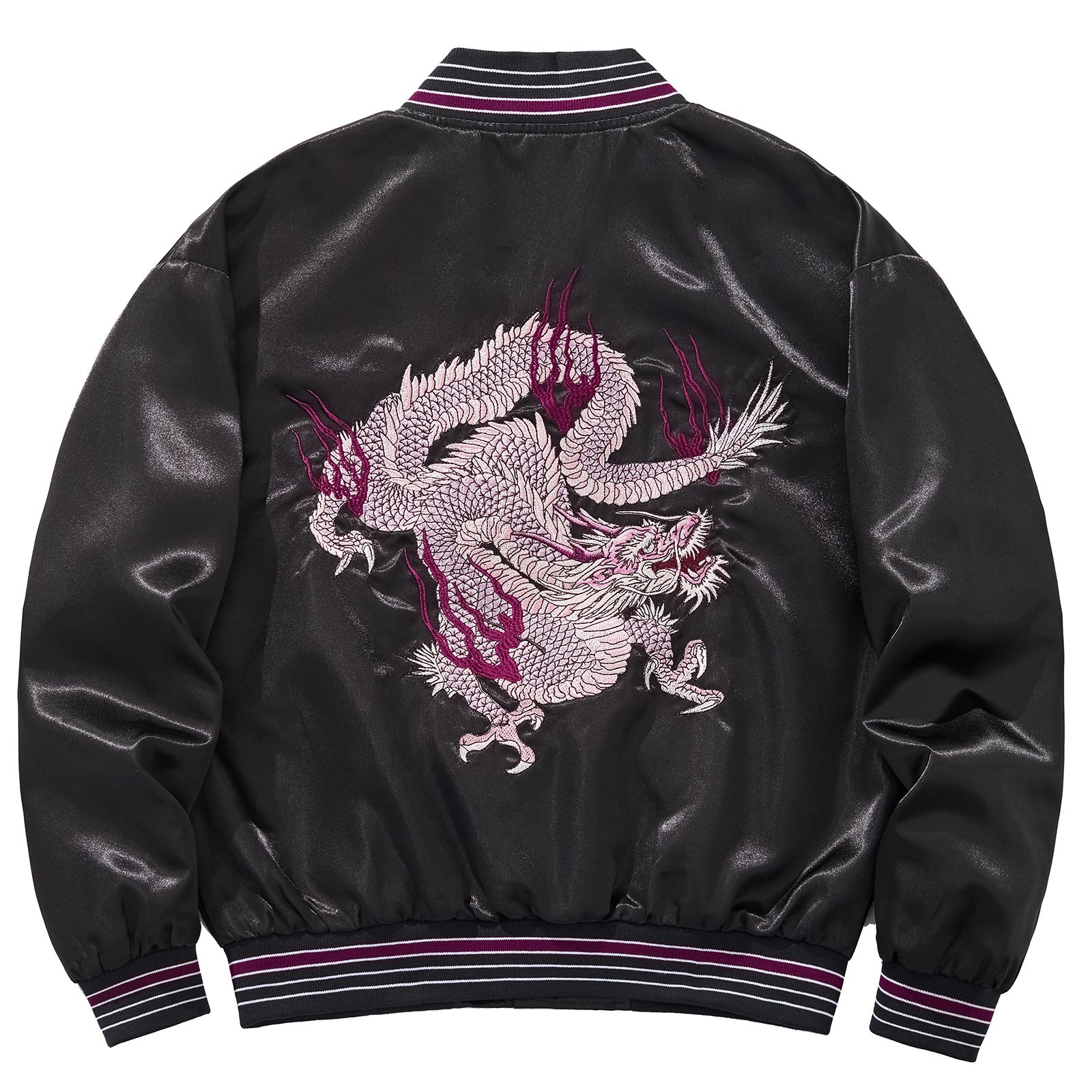 Découvrez cette veste casual qui allie style contemporain et symbolique enrichissante. Ornée d'une broderie nuages porte-bonheur et d'un majestueux dragon de feu violet, elle transforme une pièce basique en véritable déclaration de mode. Le dragon, symbole de puissance et de transformation, s'exprime à travers une teinte violette captivante qui ajoute une dimension mystique à votre garde-robe. Les nuages brodés évoquent légèreté et bonne fortune, créant un équilibre parfait entre esthétique urbaine et spiritualité. Idéale pour ceux qui cherchent à exprimer leur individualité, cette veste se porte facilement au quotidien tout en racontant une histoire unique. Un incontournable pour les amateurs de pièces chargées de sens et de caractère.